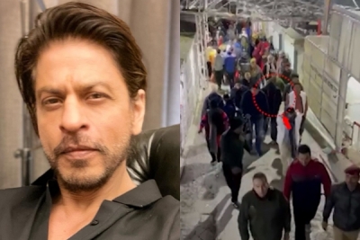 सोशल मीडिय पर वायरल हुए वीडियो में किंग खान हुड के साथ काली जैकेट पहने और अपने सुरक्षा गार्डो और स्थानीय पुलिसकर्मियों से घिरे हुए श्राइन भवन की ओर बढ़ते दिख रहे हैं।