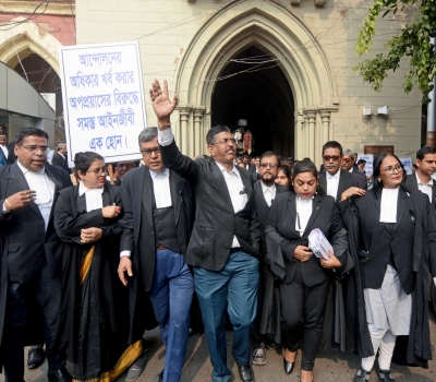 बंगाल : न्यायमूर्ति मंथा की अदालत में हंगामे की बीसीआई जांच को लेकर हाईकोर्ट के वकीलों ने काला दिवस मनाया