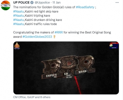 लखनऊ, 13 जनवरी (आईएएनएस)। नाटू नाटू गाने के लिए गोल्डन ग्लोब अवार्ड जीतने पर टीम आरआरआर को उत्तर प्रदेश पुलिस का बधाई संदेश वायरल हो गया है।