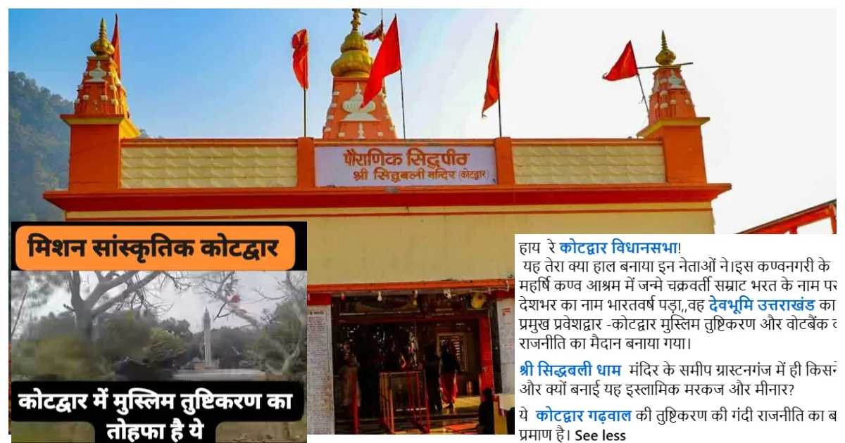कोटद्वार का पुराना नाम खोहद्वार था। क्योंकि यह खोह नदी का द्वार माना जाता था। यहां प्रसिद्ध सिद्धबली मंदिर है। इस मंदिर में देश के कोने-कोने से श्रद्धालु आते हैं। ऐसी मान्यता है कि इस मंदिर में दर्शन करने से हनुमानजी की विशेष कृपा मिलती है। लेकिन इसी मंदिर से करीब दो किमी दूरी पर एक ईदगाह है। अब सोशल मीडिया पर सवाल उठ रहा है कि आखिर कैसे कण्व ऋषि की यह तपस्थली मुस्लिम तुष्टिकरण का शिकार हुई।