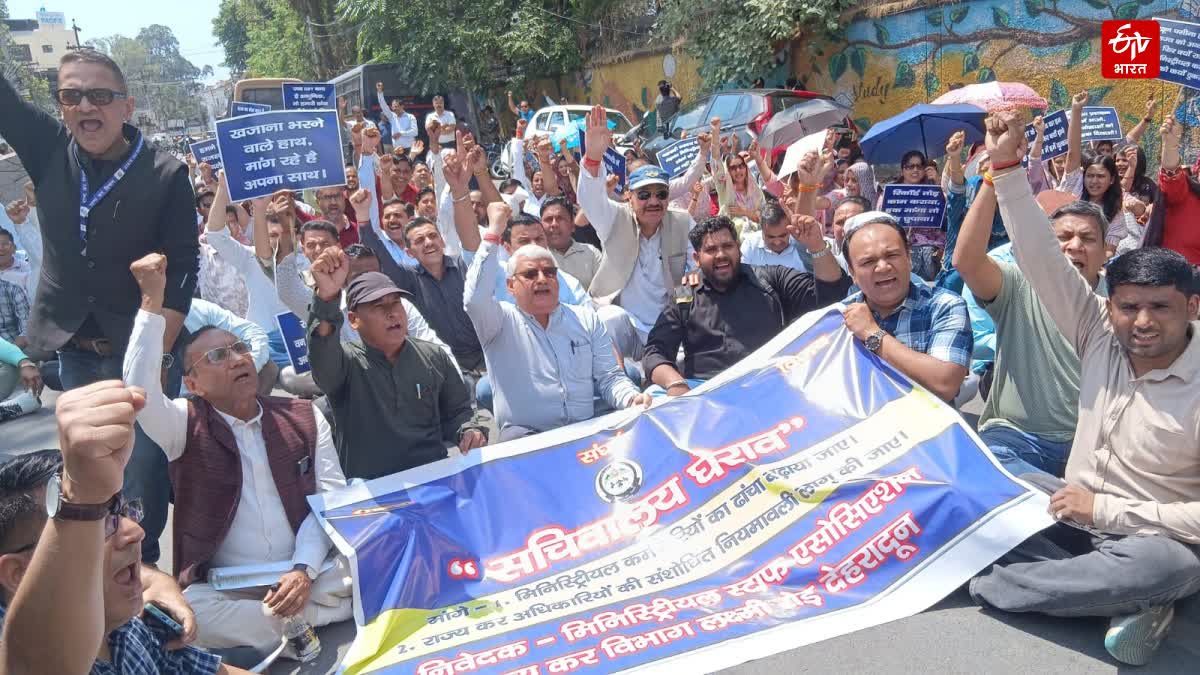 राज्य कर्मचारी संयुक्त परिषद ने दिया मिनिस्ट्रियल कर्मचारियों का साथ: उनका कहना है कि पिछले तीन माह से कर विभाग के कर्मचारी अपनी दो मांगों को लेकर आंदोलनरत हैं. हालांकि इन कर्मियों के आंदोलन के प्रभाव से अधिकारियों के प्रस्तावित ढांचे का तीन बार पुनर्गठन हो गया, मगर यह कर्मचारी अब भी इससे वंचित हैं. अरुण पांडे ने कहा कि ढांचा और नियमावली बनाने का काम अधिकारियों का नहीं बल्कि सरकार का होता है, लेकिन सरकार उनकी मांगों को अनसुना कर रही है. आज सड़कों पर उतरा वही विभाग है, जो कर वसूल करके राजस्व इकट्ठा करता है. लेकिन बार-बार प्रयास करने के बावजूद इनकी कोई सुनवाई नहीं हो पा रही है.