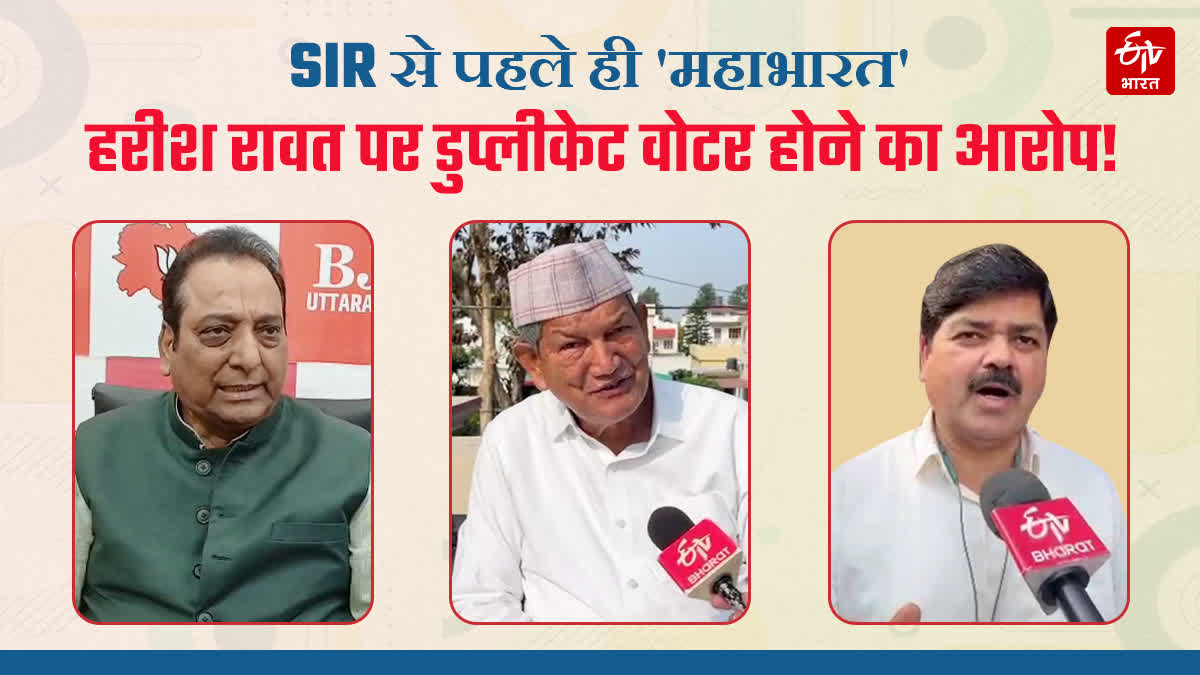 विनोद चमोली ने हरीश रावत पर डुप्लीकेट वोटर होने का आरोप लगाया: भाजपा के वरिष्ठ विधायक और प्रवक्ता विनोद चमोली ने उत्तराखंड में शुरू होने जा रहे स्पेशल इंटेंसिव रिवीजन SIR को लेकर कहा है कि कांग्रेस लगातार बिहार में वोट चोरी का आरोप लगा रही थी. बंगाल में भी वह ऐसा ही आरोप लगा रही थी. अब बिहार के चुनाव परिणाम से साफ पता चलता है कि कांग्रेस के इस नारे से खुद उनको ही नुकसान होने जा रहा है. उन्होंने कहा कि SIR में वही लोग बाहर हो रहे हैं, जो कि अवैध रूप से दो-दो जगह अपने मतदान का प्रयोग कर रहे हैं. यह सभी अवैध वोटर हैं. इनमें से बांग्लादेश से आए वह लोग हैं जो कि अवैध रूप से अपने मतदान का प्रयोग कर रहे हैं.